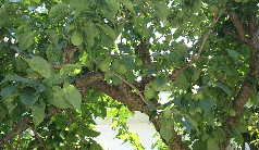| ご挨拶のあとは、先生たちが脚立に登って、 梅を落としてくれます。 いっぱい、梅の実がなっていました。 |