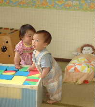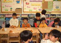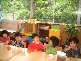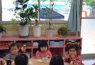 | うさぎ組 新しい部屋での生活もすっかりなじみ、友達の名前を呼び合って一緒に遊んだり 物の貸し借りも上手になってけんかも少〜しずつ少なくなってきました。 朝や帰りのお支度も自分から進んでやるようになって、 ちょっぴりお兄さんお姉さんらしくなってきました。 |
