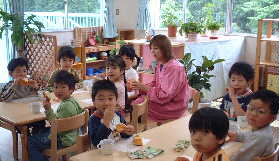 | ぞう組 年長になった自覚もでてきて張り切っている 毎日です。 きゅうりの苗を植え、枝豆の種を蒔きました。 「早く食べたいね」・・・・と、みんなで収穫を楽 しみにしています。 ![]() |