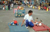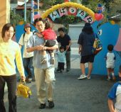 | 全園児で「とっとこハム太郎音頭」を踊りました。小さいクラスのお友達を大きいクラスの子が 見てあげながら踊ります。 これも拍手が・・・上は全部ビデオ撮影、写真撮影。お父さんとお母さんと別々のカメラで。 本当は自分の目で見て、拍手がいっぱい欲しいなぁ。 でも、可愛い姿を記録にの気持ちもわからないでもないけど・・・親としては・・ |