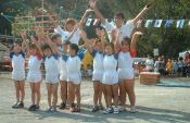 | 開会式、小さい子も並んでお話を聞きました。 先生に抱っこはだあれ? |