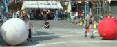最初は小学生、続いておじいちゃんや おばあちゃん、来賓の方々の 紅白大玉ころがし。 とっても大きいので 迫力満点 |
