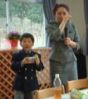 子供たちは「千と千尋の神隠し」を歌いました。 難しくて、「頑張れ〜!!」の声 |