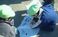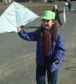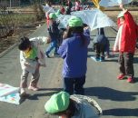 | 2003年1月10日 たこあげ大会をしました。 12月に保育園から、真っ白の凧を家に持って帰りました。 お正月の間に、お家の人と絵を書いて、たこあげの練習が宿題でした。 |