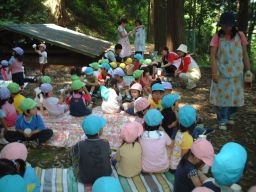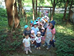 ぱんだ組 「バスに乗れるの―!!」と大喜びのお友達。 神社の長い階段も最後まで「よいしょ!よいしょ!」と登り、おいしい麦茶を飲めたり。 「また行こうね。」「楽しかった。」「今度はシャボン玉持って行こうね。」と おおはしゃぎのぱんだ組さんでした。 |