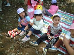 | こあら・りす組 他のクラスと一緒にバスに乗り2丁目の中里グランド付近に園外」保育に出かける。 諏訪神社では、段差の高い階段を「おいちょ」と言いながら上まで登りゴザに座って 皆で「いただきます」をして麦茶を飲む。 いつもと違う雰囲気にニコニコ笑顔で喜んでいた。行きの時も帰りの時もバスに乗る 事ができ「バシュー」と喜んでいた。 |