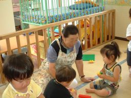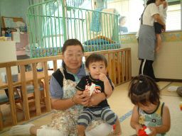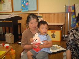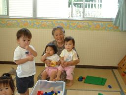 0.1.2歳児のクラスには地域のおばあちゃんたちが来て、一緒に遊んでくれました。