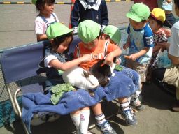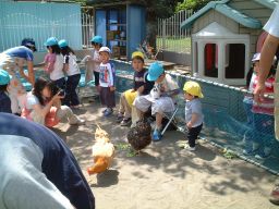 | 保育園の園庭が動物園になりました。 今年で2回目です。 たくさんの動物と触れ合うことができて、とっても楽しかったです。 |