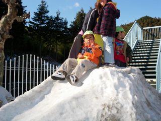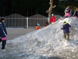 | 園庭の雪を全部集めました。滑り台ができました。2005.1.4 |