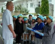 | 2005年3月15日 卒園式の練習の合間に、保育園のバスに乗って 3カ所の老人ホームに行きました。 老人ホームでは、小さい時から何年も、敬老の日や運動会で、またお遊戯や玉すだれを見ていただきました。 いよいよ4月には小学校に行くぞう組、最後のごあいさつをしました。 |