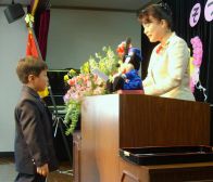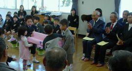 | 6年2ヶ月保育〜2年4ヶ月保育まで、ひとりひとり保育証書を・・・ ほとんどの卒園児が「おめでとうございます」と保育証書を渡されると 自然に「ありがとうございます」と。 |