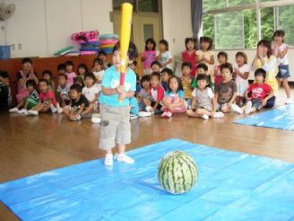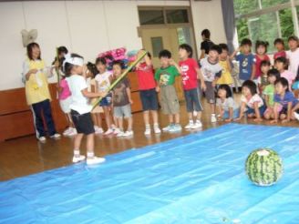 スイカ割のあと、最後のプールに入る予定でしたが、気温が下がってしまい、残念ですが入ることができませんでした。