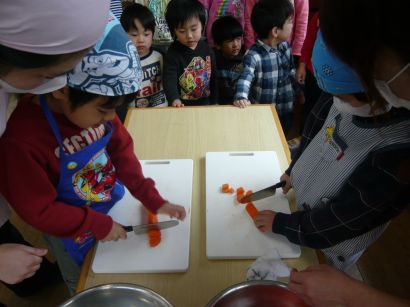 | 小さいクラスが切っているところを見学に来ました。 |