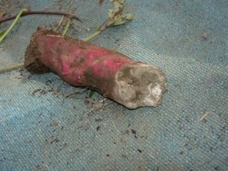 猪に食べられたサツマイモ。なんと大きなおいしそうなものはがりを食べています。