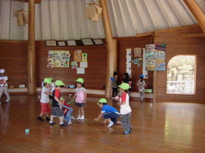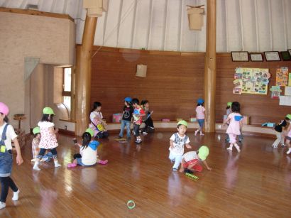 子ども劇場の中では走り回りました