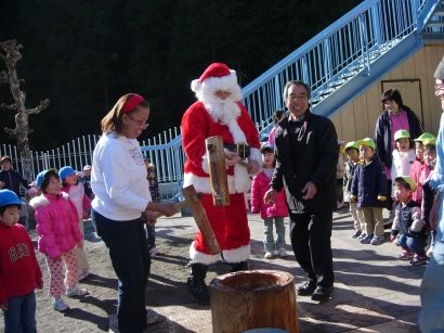 サンタクロースも、Dee先生も一緒にお餅つき