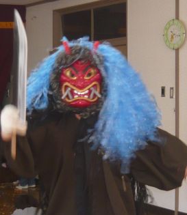 外の赤鬼を見ていたら、なんと、突然に後ろに青鬼。 |