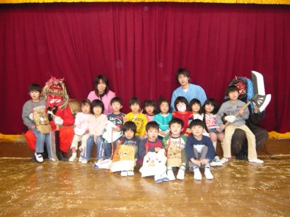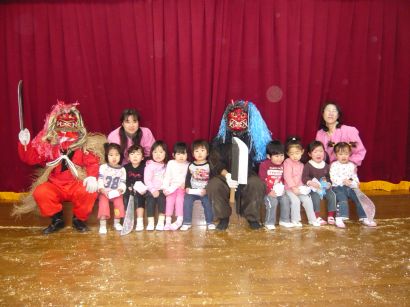 暴れまわった鬼もやがて疲れて、みんなで記念撮影。 |