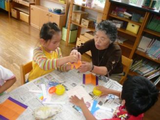 初めての行事です。おじいちゃんや、おばあちゃんと一緒に何かをつくろう・・・