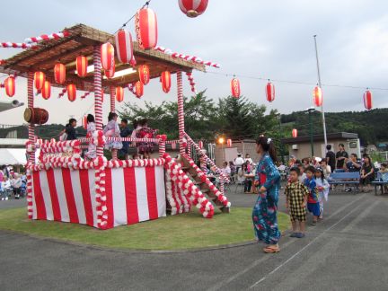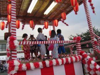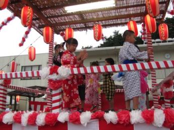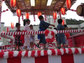 やぐらのに上がって、踊ると、かわいいとおじいちゃんやおばあちゃんに喜んでいただけました。