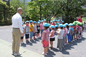 三田保育園の園長先生とお友達、ご挨拶