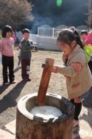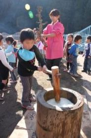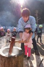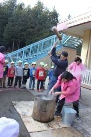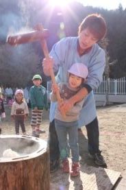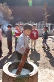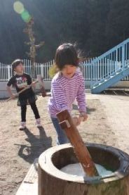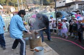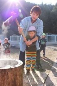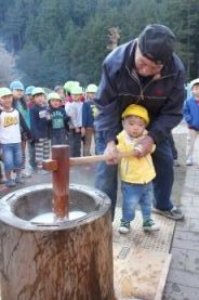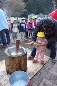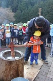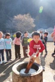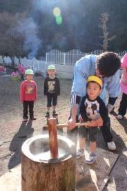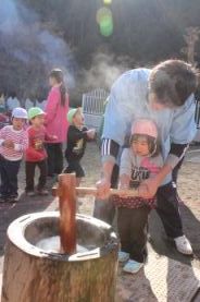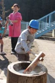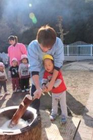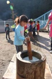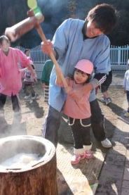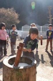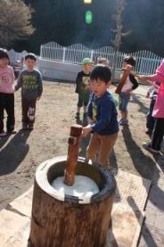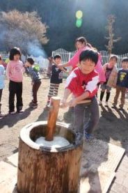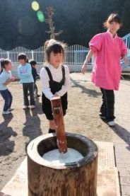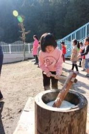 きりん組とぞう組は、一人で搗きました。 |
