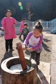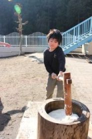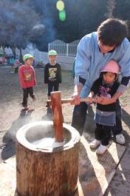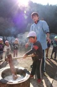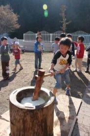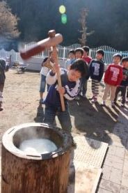 子供たち、全員がお餅つきしました。 |