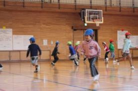 広い体育館で、小学生の用意したゲームなどで、思い切り走りまわってきました。