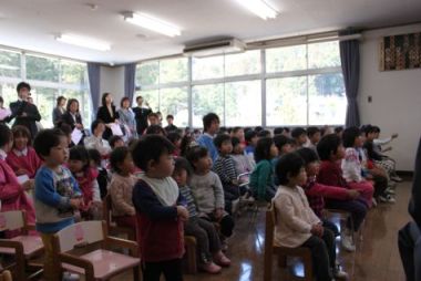 みんなで歌を歌いました。ぞう組さんが前に出てくれました。