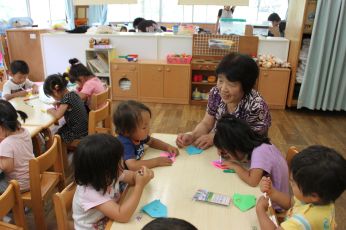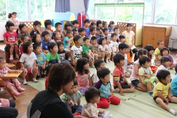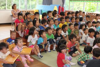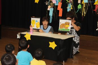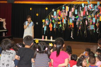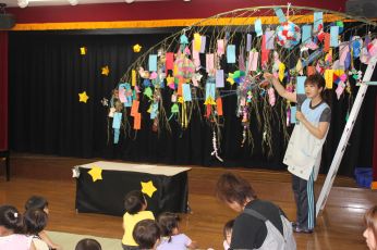 ホールで、七夕のお話を聞きました