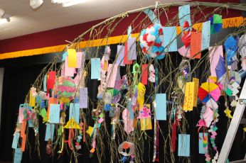 子供たちの願いが叶うよう、一緒にたくさん飾りました。
