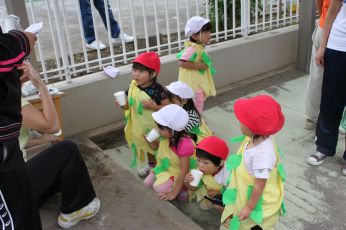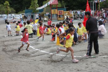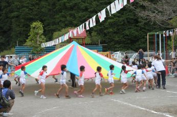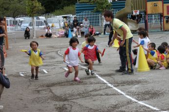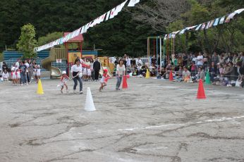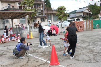 当日は保育園の庭で運動会が出来て、よかったですね。